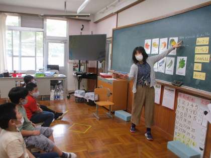 今日は今年度初めての外国語活動です。英語で体調について確認をした後,野菜の名前について学習しました。