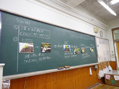 子葉が出たあとはどのように育つのか,観察したことをもとに考えました。