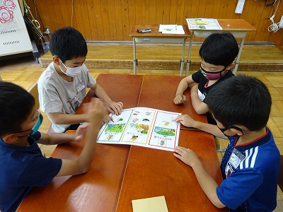 食べ物には,「体を作る」「エネルギーのもとになる」「体の調子を整える」働きがあります。それぞれ,大切な役割があり,まんべんなく食べることの大切さを学びました。
