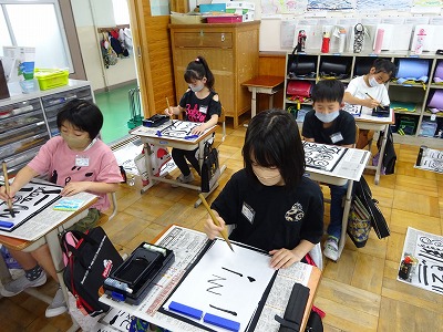 今日は,道具の説明と準備から後片付けまでの一連の流れを確認しました(早く,字を書きたい子どもたちですが,準備と後片付けが素早くできるようになることは,とても大切です)。