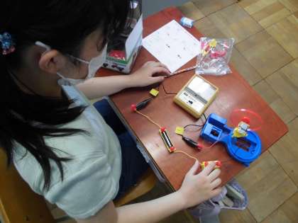 モーターを使って実験を行うと,子どもたちは「向きが変わった!」や「なんで変わるんだろう?」などの,新しい発見や驚きがありました。