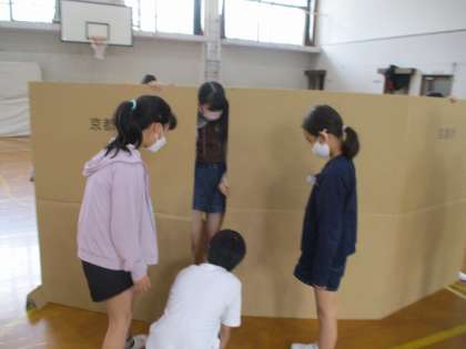 また,ダンボールベッドの組み立てや,災害用トイレ雨水タンクの操作もやらせていただきました。