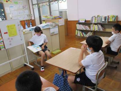 こすもす学級では毎朝,日直が絵本の読み聞かせをしています。声の大きさや速さ,絵本の見せ方に気を付けて読んでいます。