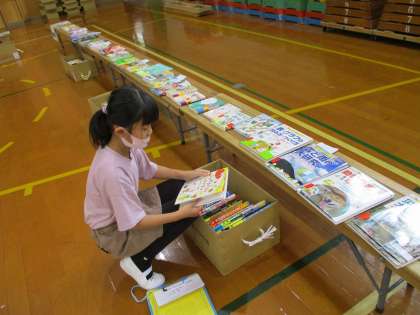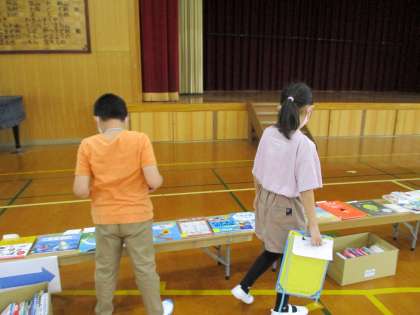 今日は選書会でした。体育館にずらっと並べられた本を見て子どもたちは大喜び!たくさんの本の中からお気に入りの1冊を見つけることができました。