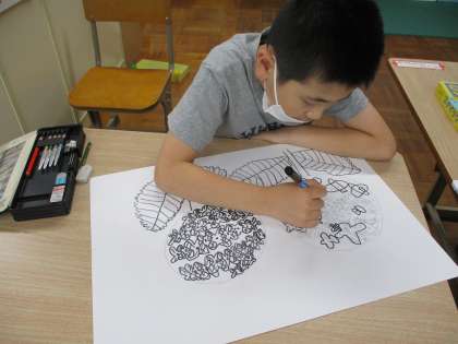 コンテやペンを使って丁寧な線描きができました。次回は絵の具を使って彩色していきます。