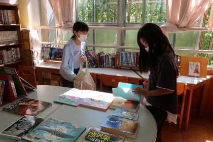 図書館で本を借りている様子です。