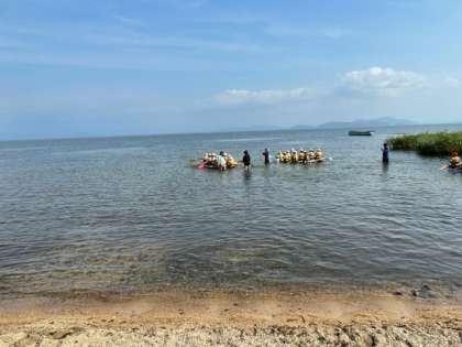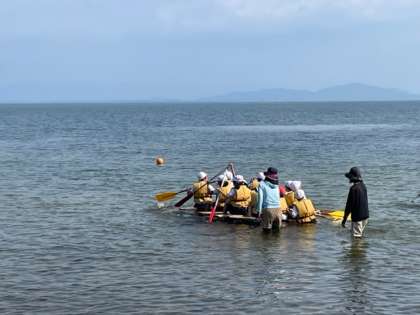 広い琵琶湖へ漕ぎ出しました。