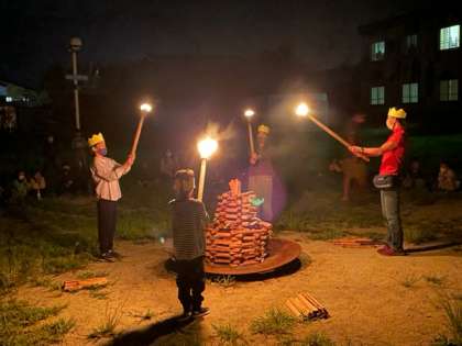 火の神の登場を待っています。火の神が火を分け与えてくれました。