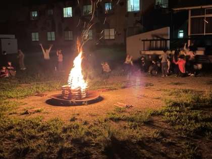 みんなでゲームをしました。少し風が強かったですが、大いに盛り上がりました。