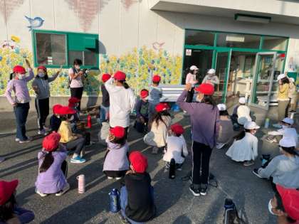 朝からみんなでレクレーション。元気です。
