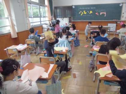 図画工作の時間には,「いろいろなかたちのかみから」という単元の学習を進めています。