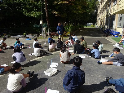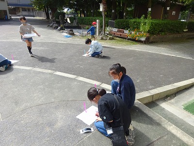 太陽の動きを調べるために,影の位置を記録しました。