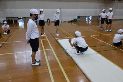 今日は体育でマット運動を行いました。マット運動では前転や後転など様々な技に挑戦しています。子どもたちは練習をしながら「次は足を閉じて回ってみよう!」や「しっかり手をついてやるときれいに回れた」など,練習を一生懸命に取り組んでいます。