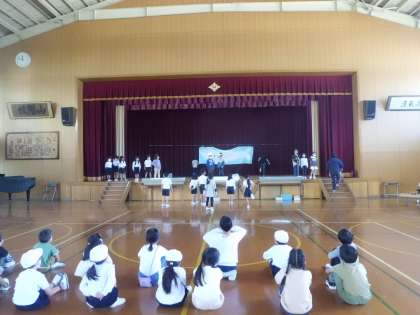 リハーサルの前に,1年生は互いのクラスの発表を鑑賞しました。