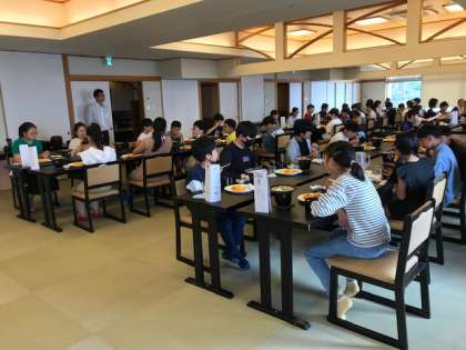 修学旅行2日目です。朝食の様子です。しっかり食べて今日の活動に備えてください。