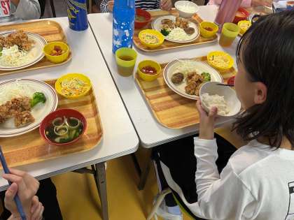 昨日の夕食の様子です。子どもたちは食欲があり、しっかりと食事をとれたようです。ごはん・みそ汁はお替り自由だったようですが、お替り用のごはん・みそ汁は全て食べてなくなりました。