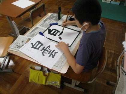 5年生が毛筆学習をしました。「ブリ」と「白雲」を書きました。「ブリ」ははらいに気を付けて書きました。「白雲」は文字のバランスに気を付けて書きました。次回は清書をします。