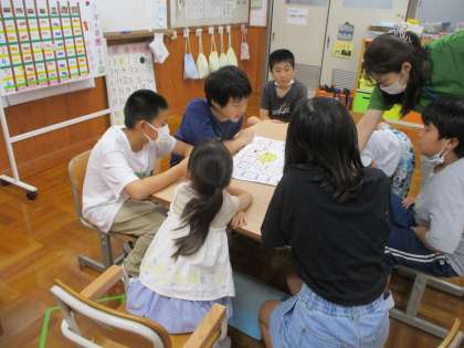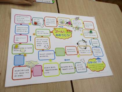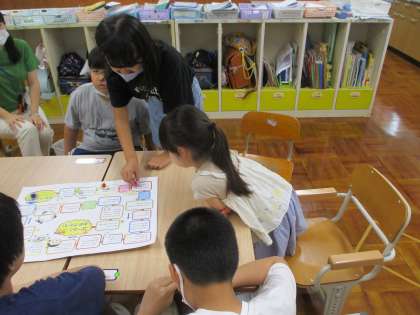 道徳であいさつすごろくをしました。「おはようございます。」や「いただきます。」などマスに書かれたあいさつをしました。相手の顔を見る、大きな声で言うなど、相手意識をもって気持ちの良いあいさつをすることができました。