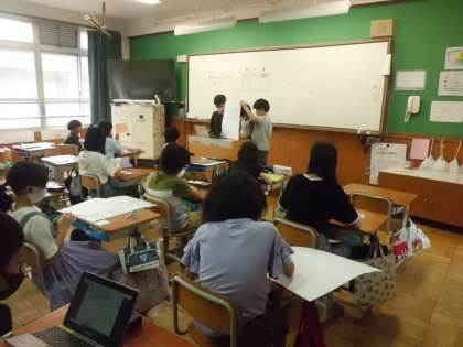 総合学習で学んだ防災について、グループに分かれての発表を行いました。