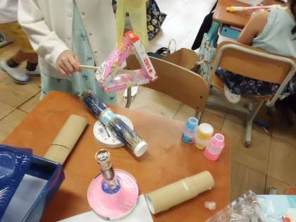 作り終えた班から楽しそうに音楽を奏でていました。本当のたいこやトライアングルの音が聞こえてきそうな感じがしました。