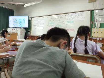 8日(金)の2・3時間目に自由参観がありました。算数の「図を使って考えよ(2)」では,「じゅんにたす」「まとめてたす」方法を学習しました。計算をたくさんしているためか,どんどん解いていこうとする子どもたちの姿がみられました。