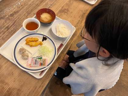 夕食の時間です。1日屋外で活動したので食欲も旺盛でしょうか。しっかり食べてくださいね。