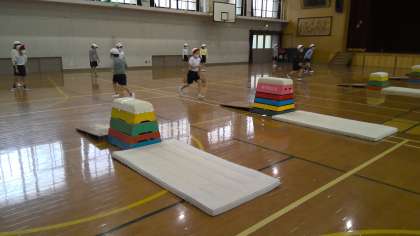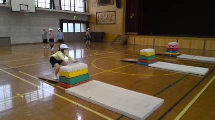 体育では「とびばこあそび」を学習しています。とびのり・とびおり,開脚飛び,横跳びこしなどのわざを色々な高さのとびばこで挑戦しています。友達からいいところを教えてもらったり,アドバイスをもらったりすることでできるようになった姿も見られました。「こわかったけど,何度もすると慣れて跳び越せるようになった!」とうれしそうに話をする子もいました。