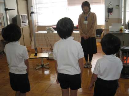 保健室での約束や利用の仕方の話を真剣な顔で聞いた後は,いよいよ計測です。