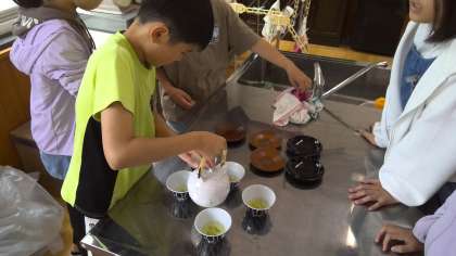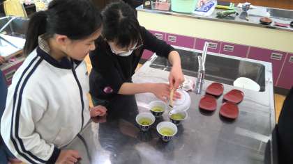 今日は調理実習として、お茶をいれました。安全に気を付けて、班のみんなで協力しながら美味しいお茶をいれることができました。