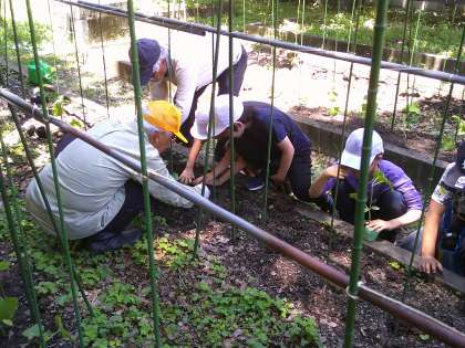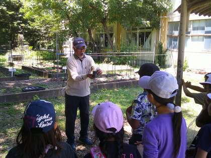 地域の方にご来校いただき、きゅうりの苗を植えました。約1か月後の収穫に向けて、これから水やりを忘れずにしていきましょう。