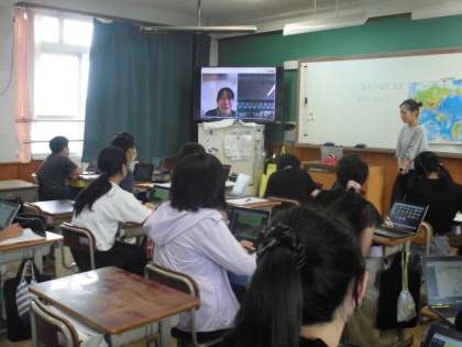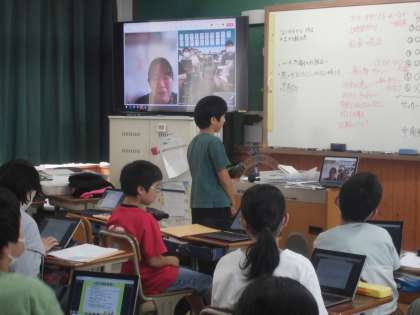 総合的な学習の時間の「国際理解〜開こう!未来へのトビラ〜」の学習では、外国にはどのような文化やくらしがあるのかについて、エル・サルバドルへ暮らしておられた先生とオンラインでつなぎ、教えていただきました。自分たちの生活・日本と比べながら、しっかりと聞いていました。