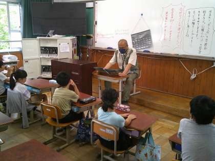 今日は朝の読書タイムや昼休み後のチャレンジタイムなどに、教員が他学年の教室に行って本の読み聞かせをしました。