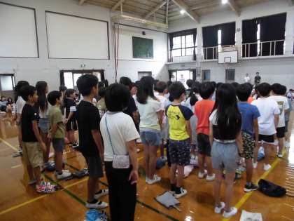 今日の児童朝会で、4年生は「忘れもの」と「ぼくは川」の2つの詩の発表をしました。