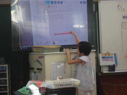 今日の算数では、まとめて考える仕方で計算する学習をしました。問題文からまとめて考える仕方を自分なりの考え、図に表してみんなで交流しました。そこから、式と答えを考えました。