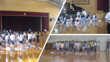 今日の児童朝会は4年生の発表でした。詩の発表を聞いて、いろいろな学年から感想を伝え合いました。また、全校合唱では6年生のピアノ伴奏で歌いました。きれいな歌声で今日一日のスタートを切ることができました。