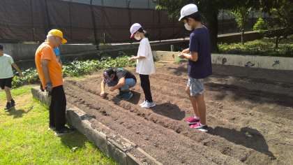 地域の方にお世話になり、6回目の大根の種を植えました。