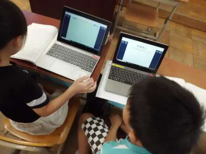 今日はギガ端末を使って「ローマ字入力」に挑戦しました。