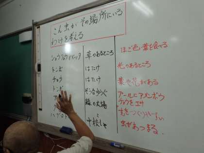 今日は「どうしてその昆虫が場所にいるのか」についてみんなで話し合いました。