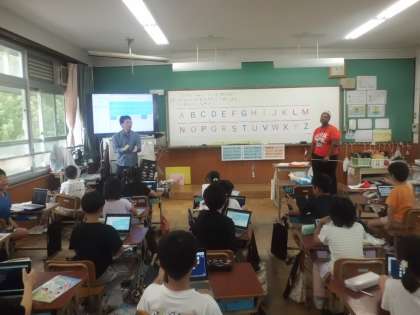 今日は、ALTのキーン先生と一緒にアルファベットをみんなで発音したり、身近なアルファベットを見つけたりして楽しみました。