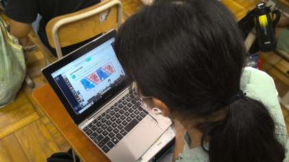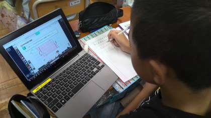 どうやって面積を求めるかを考えています。ロイロノートを使って、図形に書き込みながら取り組みました。友達の意見を見て、考えを広げる様子も見られました。