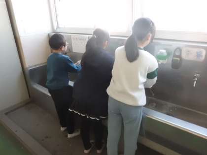 学習後には手洗い場できれいに手を洗う姿が見られました。