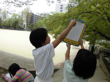 今日の理科では、前時に学習したことに加えて、気温に関連させながら生き物との関わりなどについて考えました。3年生で学習した温度計の使い方をおさらいしながら、丁寧に観察をしました。自分の調べたいことを決めて、学習を深め、学びにしてほしいなと思います。