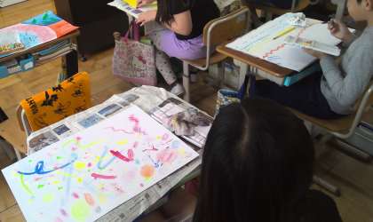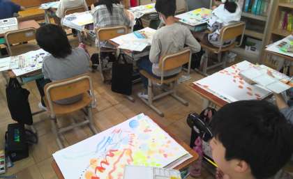 図画工作科では、身の回りの音をイメージをふくらませて表現しました。絵の具やパス、コンテなど様々な画材を組み合わせて描きました。参観で足を運んでいただいたときには、ぜひご覧ください!