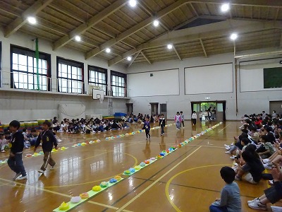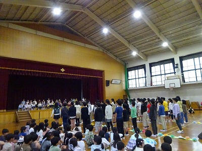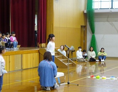 1人ずつ、名前と好きなことやがんばることを全校児童の前で言うことができました。
