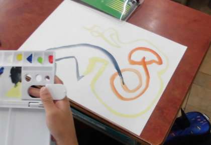 3年生の図画工作で絵のぐを使った学習をはじめました。筆や筆洗の使い方からはじまり、色の混ざり方や水の量で変化する色の濃度などを子どもたちは楽しんでいました。