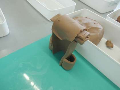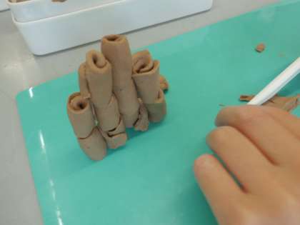 子ども達は、様々な工夫をして粘土で作った「板」を立たせていました。