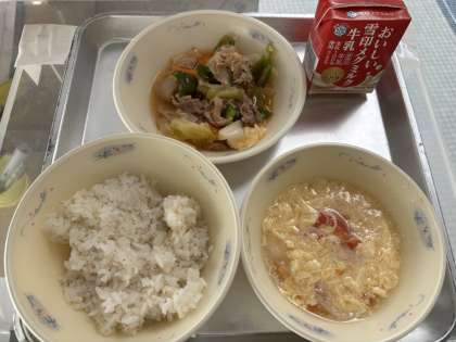 今日の豚肉とキャベツのソースいためは、新献立でした。