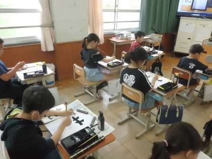 3年生で学習した「横画」「たて画」「左はらい」「曲がり」「はね」などを振り返りながら、丁寧に書きました。