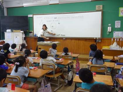 今日の算数「いくつといくつ」の学習では、10はいくつといくつに分けることができるのかをおはじき入れゲームで考えました。子どもたちは、楽しくおはじきを使いながら学習していました。