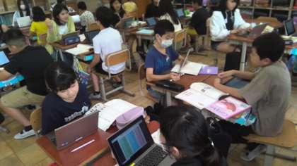 国語科では、説明文の主張と事例を捉え、自分の経験を踏まえて考えたことを文章に表しました。事例に対して、具体的に経験と結び付けながら考えることができました。交流では、より考えが広がったり深まったりしました。